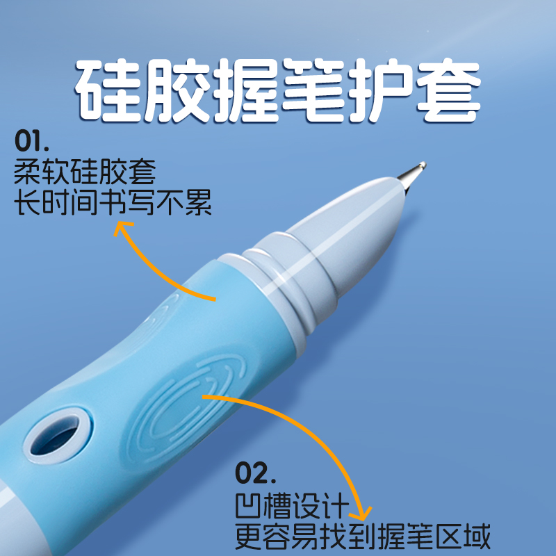 正姿钢笔学生专用三指定位钢笔可替换墨囊黑色蓝色签字笔四五六年级F尖暗尖舒适软握儿童矫正握姿书法练字笔