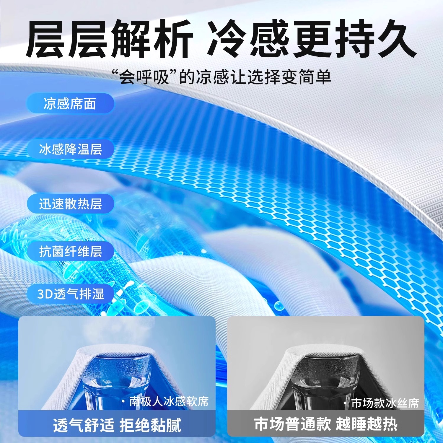 水星家纺凉感雪糕席5代可水洗凉席Q弹空调软席子A类裸睡床笠夏季