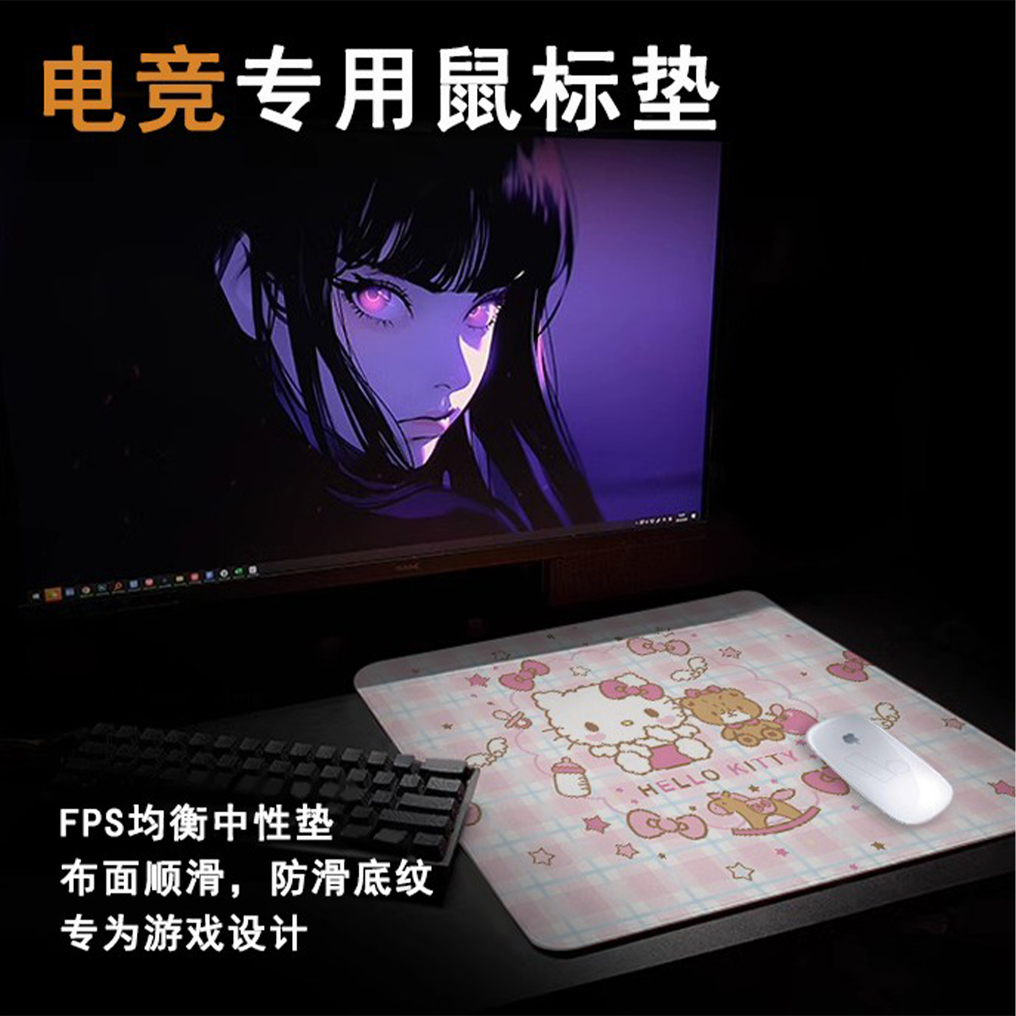 hello kitty鼠标垫超大粉色女生电竞专用大号fps游戏细面加厚垫子