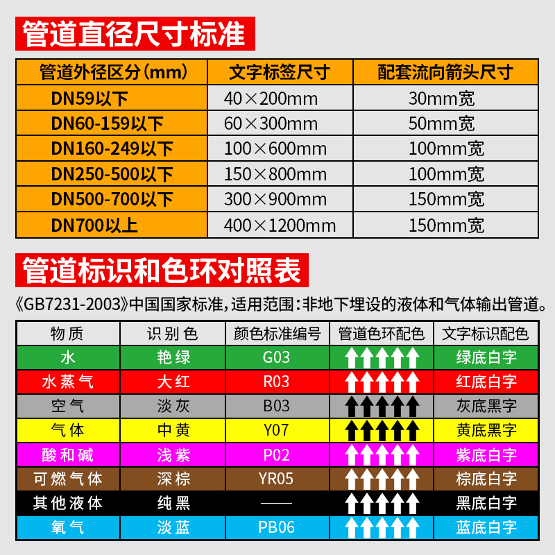 管道流向标识贴纸国标5cm10厘米宽箭头标识色环指示标示贴防水空气蒸汽化工管道消防不干胶带标签反光警示贴