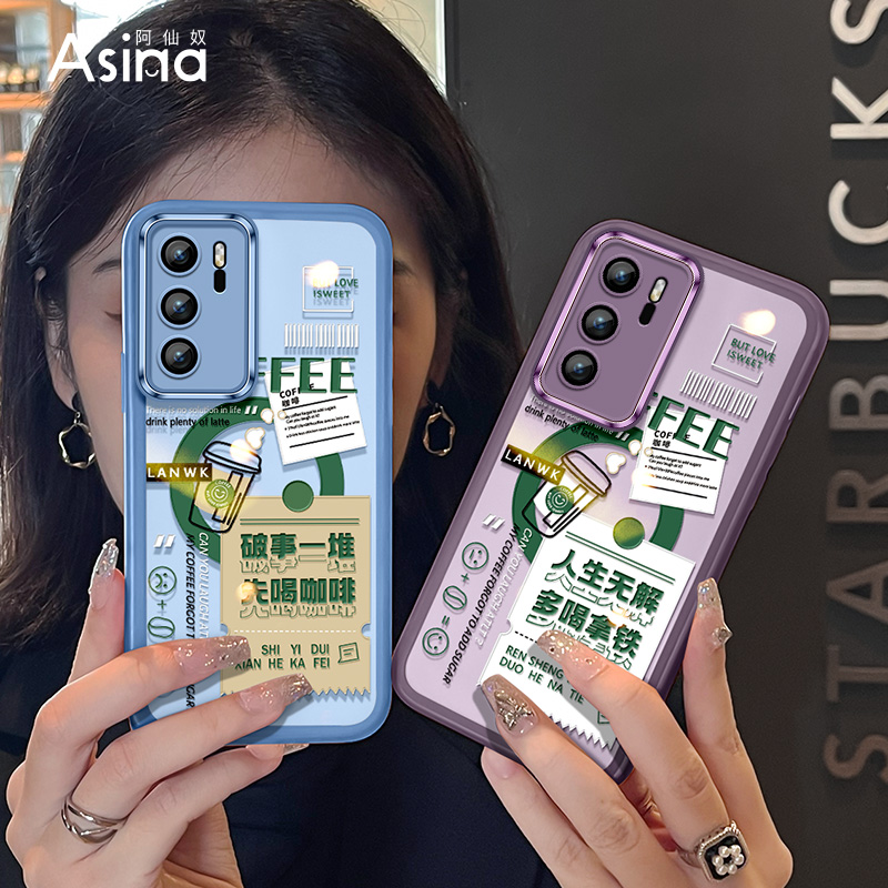 先喝咖啡适用于华为p40pro手机壳新款p50pro透明自动镜头膜p30pro简约女款p40防摔全包创意个性网红软保护套