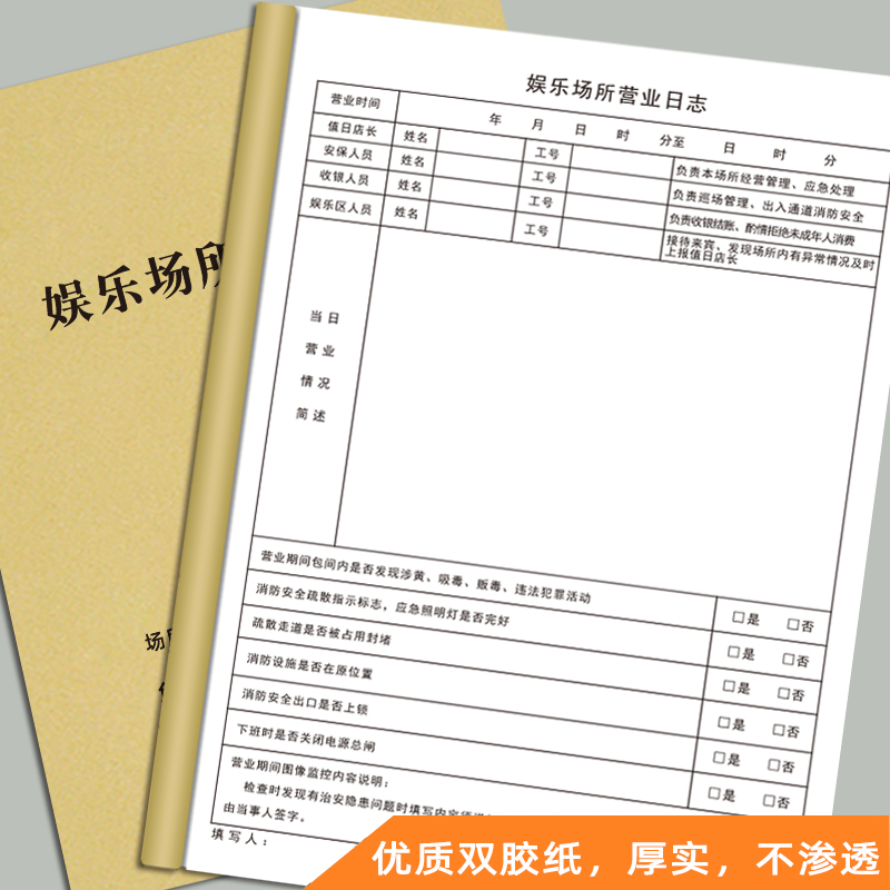 娱乐场所营业日志娱乐场所营业记录本每日收入记账本销售业绩提成表网吧安全日常巡查记录簿收支明细账本定制