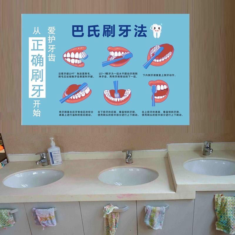 巴氏刷牙法贴纸家用步骤图诊所口腔提示挂图儿童墙贴立体卫生间