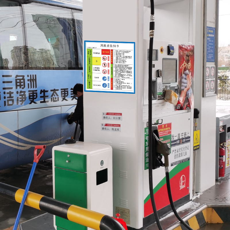 加油站卸油点安全风险点告知卡检维修清油口罐区通气管作业营业配电室摩托车危险因素应急管控措施警示标识牌