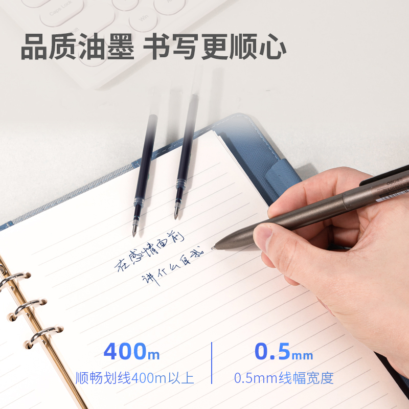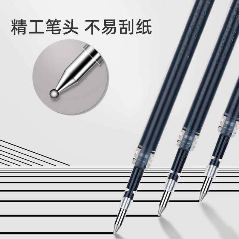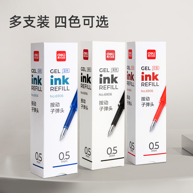 得力按动笔芯中性笔芯0.5黑色替芯按动笔针管头按动式笔芯0.38黑笔笔芯子弹头速干蓝色红色学生考试中性笔