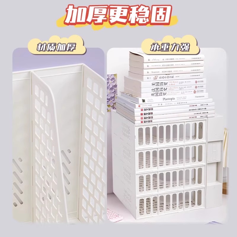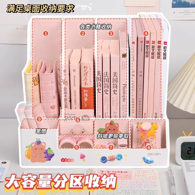 得力文件收纳架书立架彩色文件架笔筒A4文件置物架创意四联桌面文件框四栏办公室学生资料收纳整理办公分类