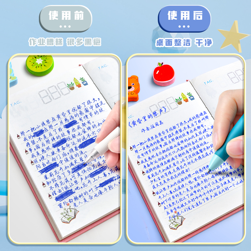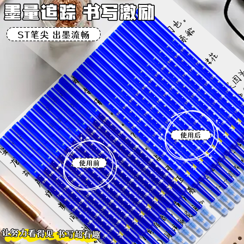 可擦笔芯ST按动笔芯晶蓝黑色自勉自律笔芯0.5小学生练字专用摩磨易擦三年级儿童魔力擦水笔可以擦掉的圆珠笔