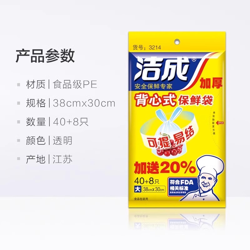 佳帮手保鲜袋食品级家用一次性背心式手提加厚冰箱专用密封塑料袋