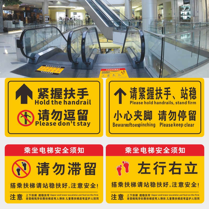 紧握扶手请勿在此停留乘坐扶梯安全须知提示地贴加厚斜纹地板膜防