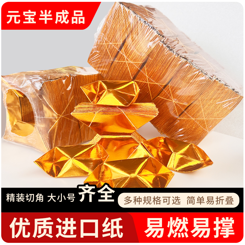 厂家金纸半成品元宝金条纸加厚直发1000个包邮佛堂用品切角批发折叠金色金黄纸张