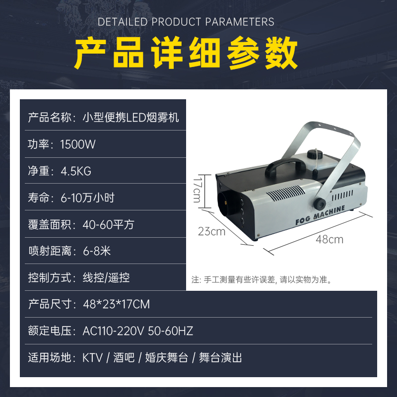 烟雾机小型可携式LED恒温1500w婚庆酒吧喷烟产生器舞台喷雾定时定