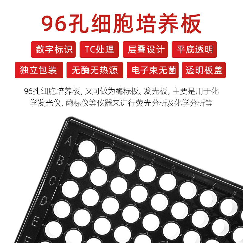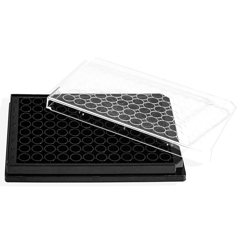 11514 96孔细胞培养板黑色框透明平底带盖 TC处理黑色透明底化学发光培养板