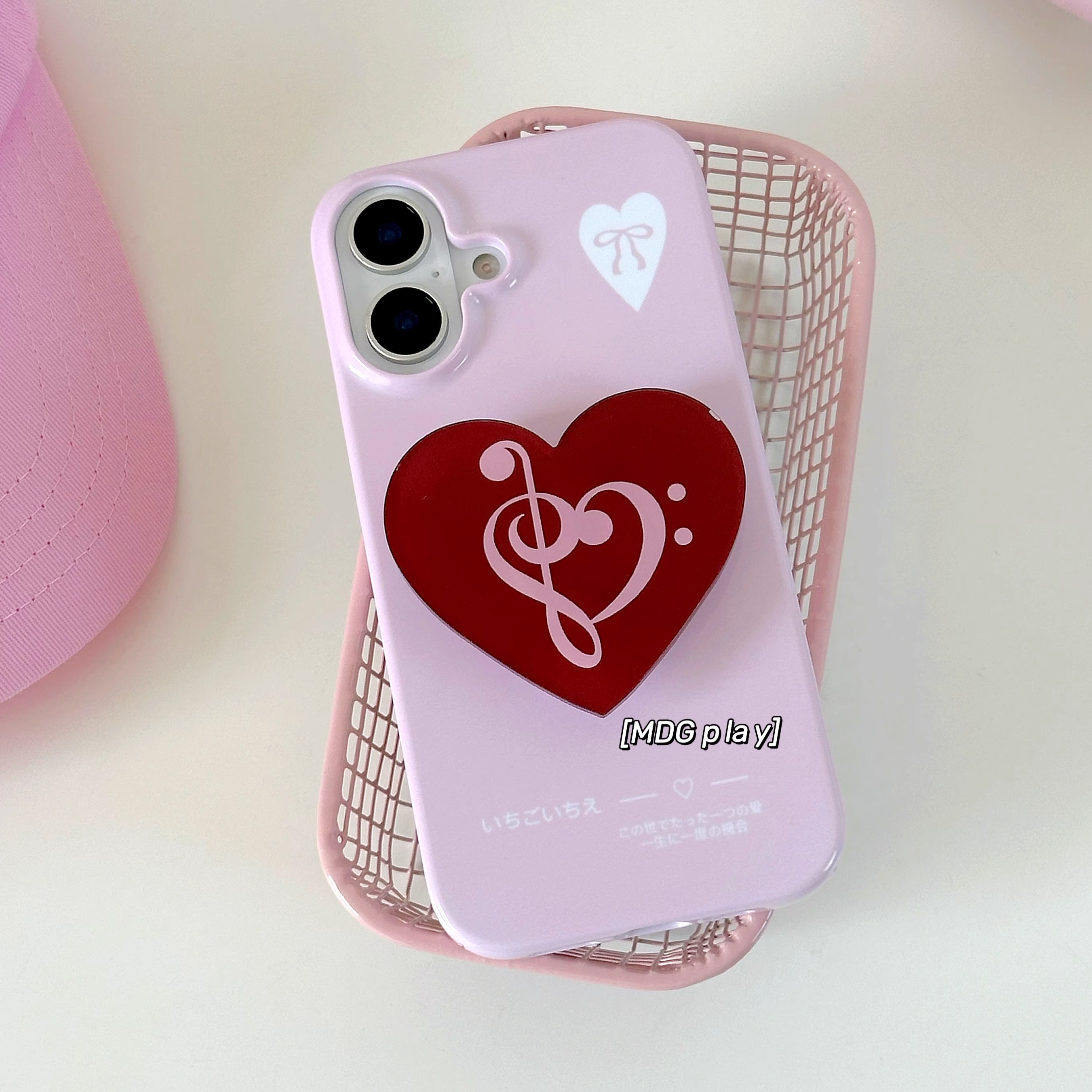 古早叛逆甜心夏日洛里塔粉色爱心音符少女心甜美粘贴支架适用iPhone17pro手机壳15新款14创意苹果手机壳