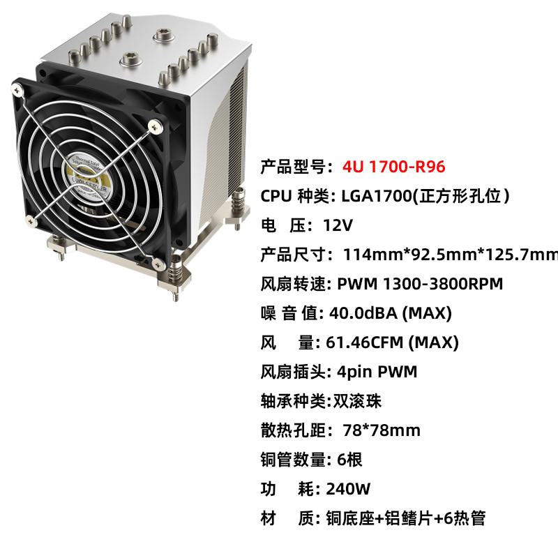 金钱豹4U1700服务器塔式6铜管双滚珠温控散热器LGA3647/2011/115X