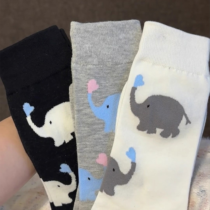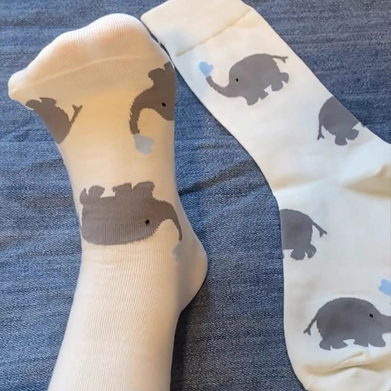 可爱卡通袜子女春秋无骨中筒袜搞怪大象纯棉白色ins韩版潮长袜女