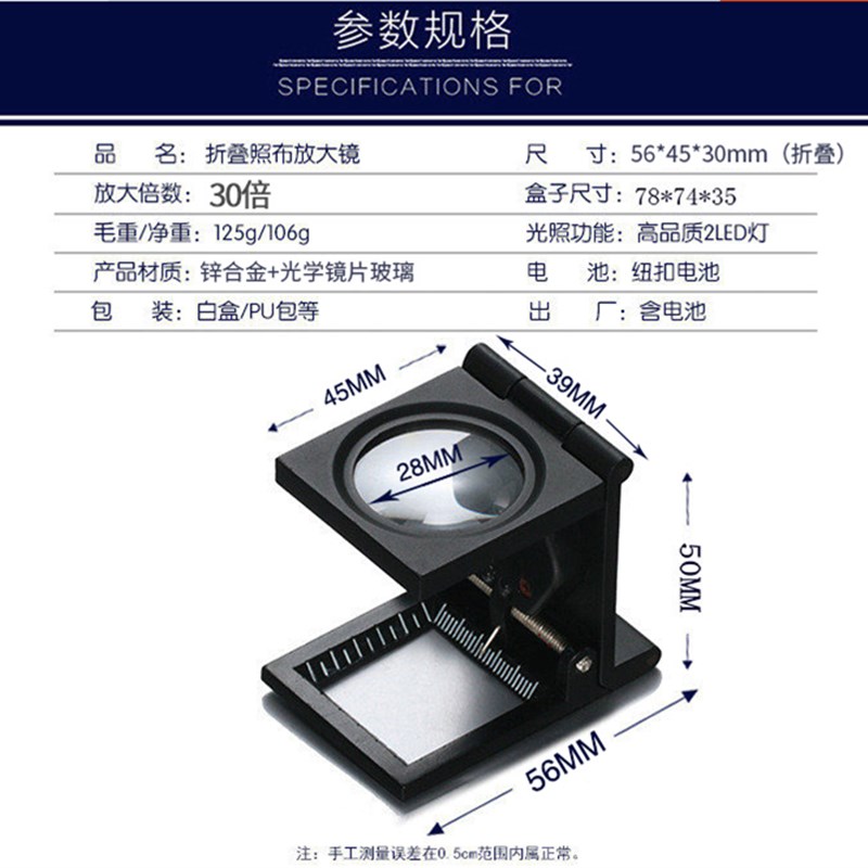 带灯放大镜30倍支架刻r度阅读手持印刷照布珠宝折叠式鸽子眼放大