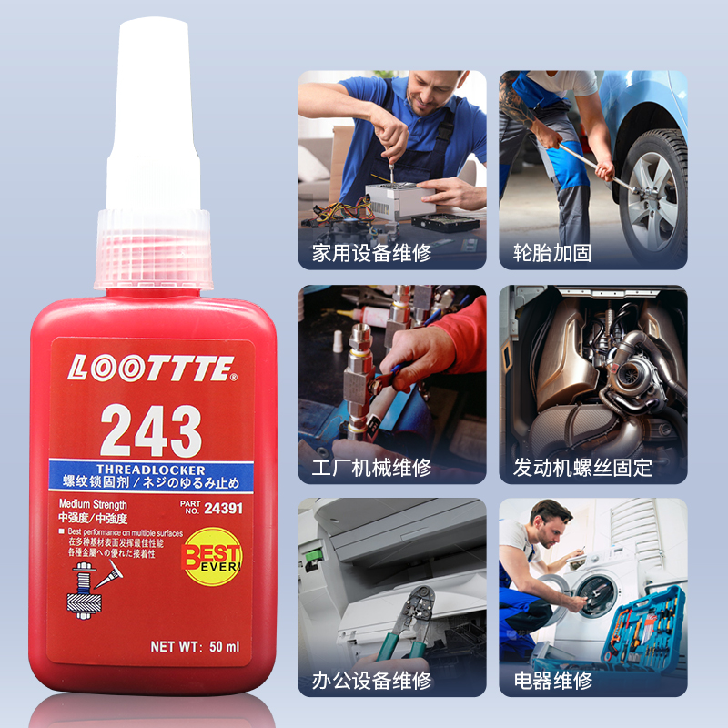 243螺丝胶水螺纹紧固剂222242262263271272277290螺栓防松滑丝低厌氧密封胶乐泰耐高温固定轮胎发动机高强度