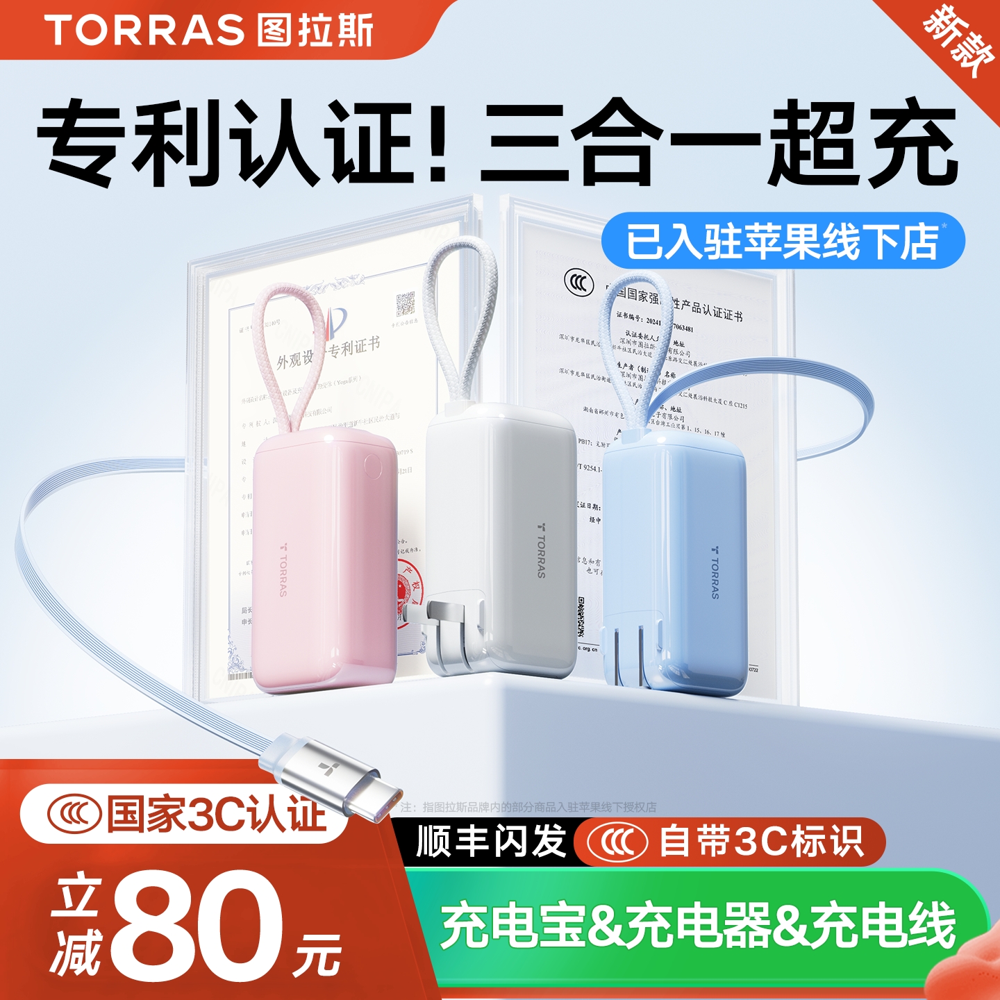 【papi酱同款】图拉斯三合一随心充3C认证充电宝器可上飞机2025新款快充能量棒适用苹果17移动电源自带线插头