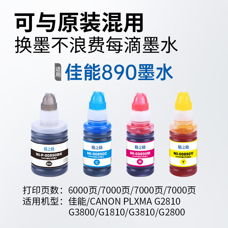 格之格适用于佳能G3800墨水G2810G1810 G3810 G2800 G4810 G6080 G2010G4800连供打印机墨仓式墨水GI-890颜料