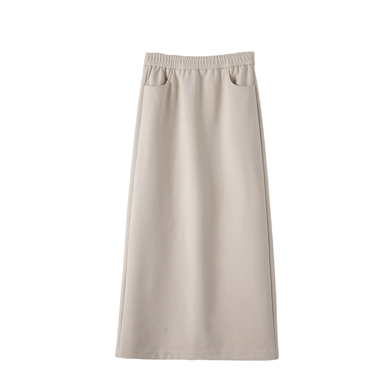 晚白2025年冬新款时尚半裙全松紧后开叉加厚毛呢直筒长半身裙