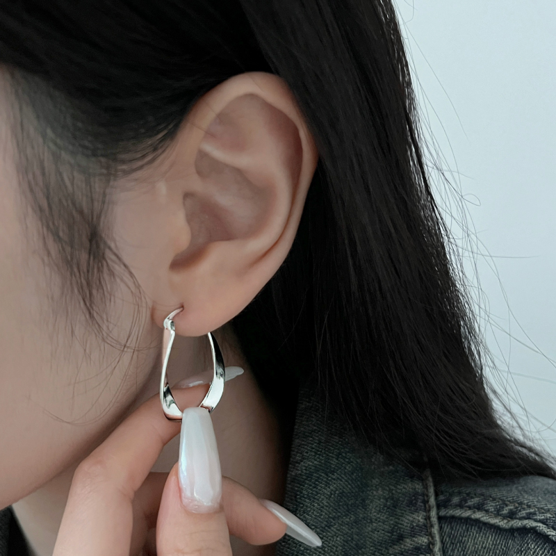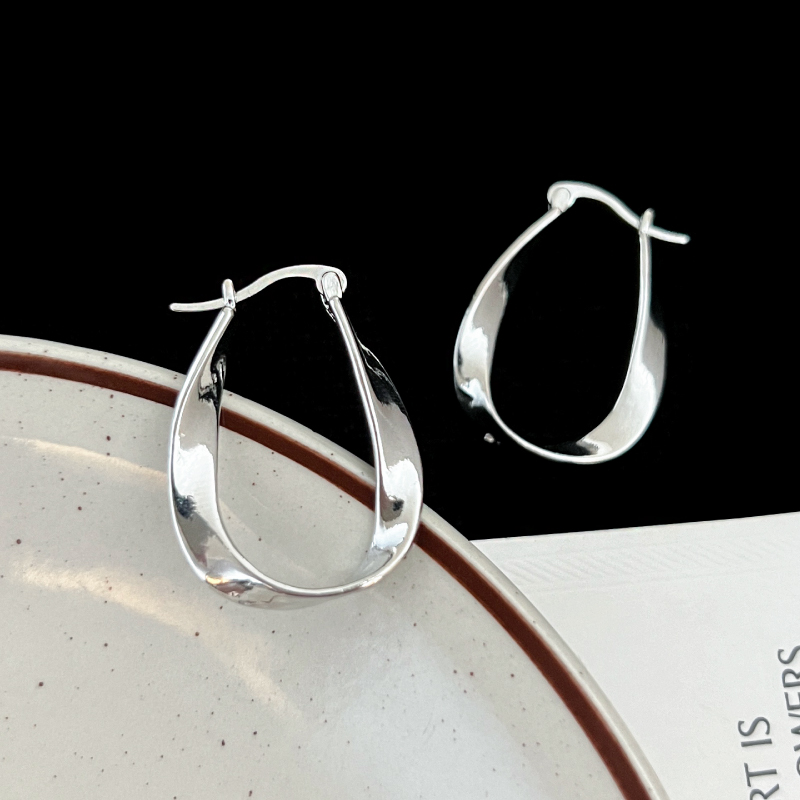 银色素圈耳环女夸张大耳圈2025新款爆款高级感圈圈耳饰耳圈耳夹