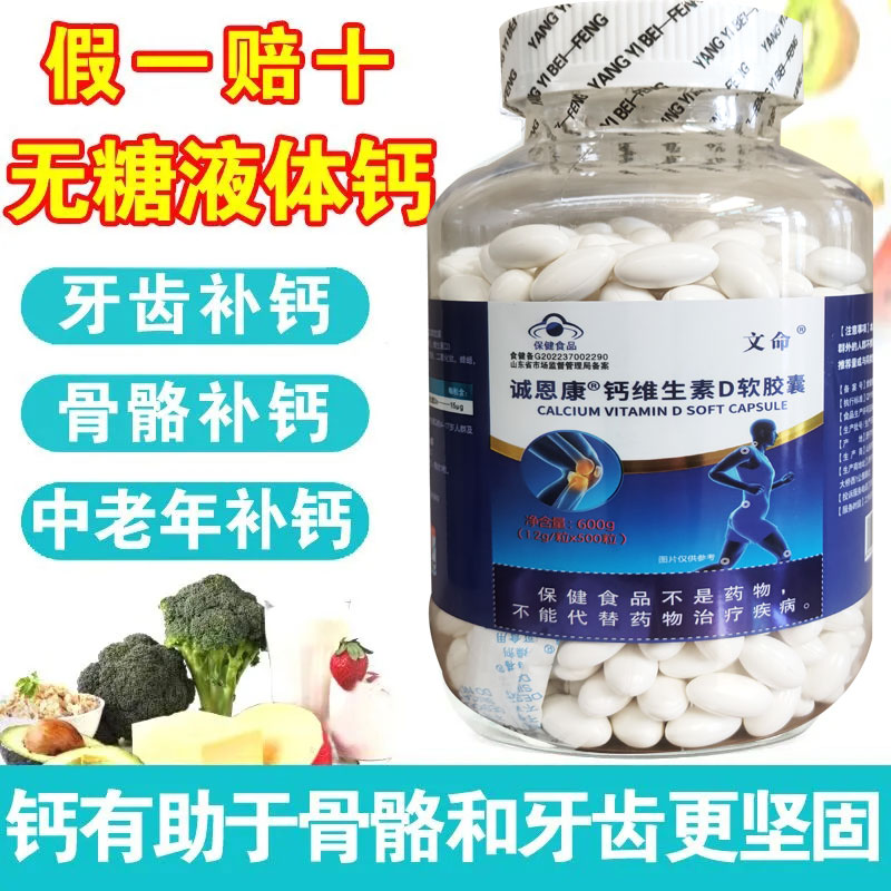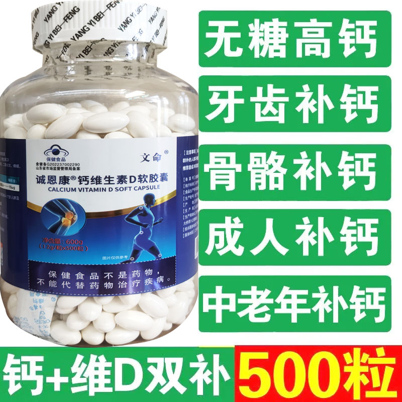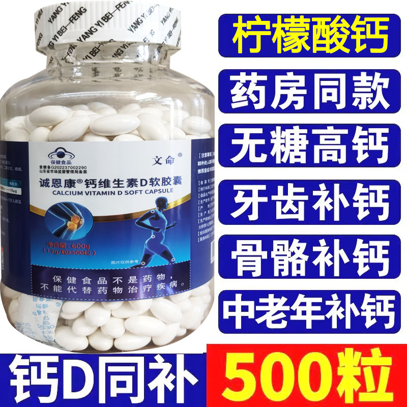 500粒柠檬酸钙钙片中老年碳酸钙液体钙软胶囊维生素D3成人大瓶