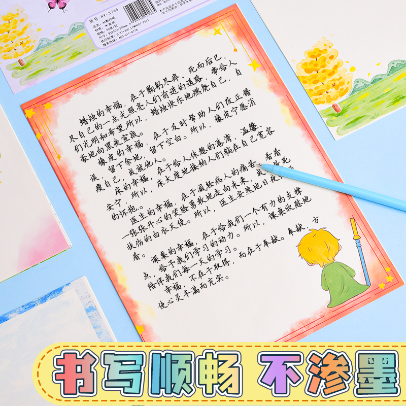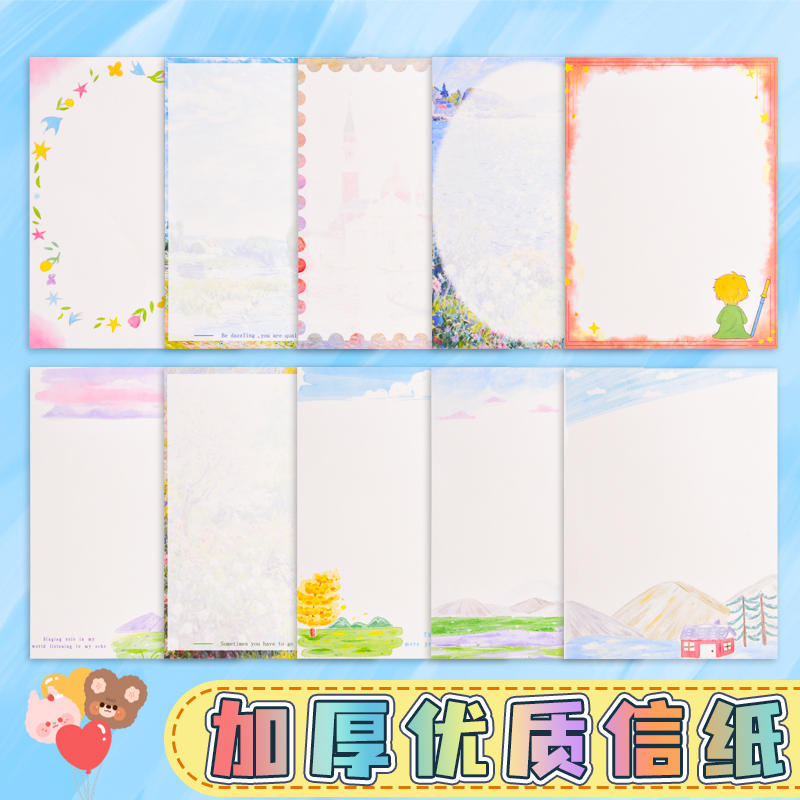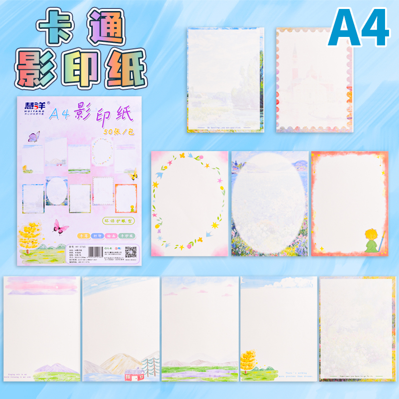 A4彩色影印纸带花纹图案彩色花边复印纸学生空白信稿纸彩色卡通A4信纸可爱高颜值学生用好看的生日贺卡手写纸