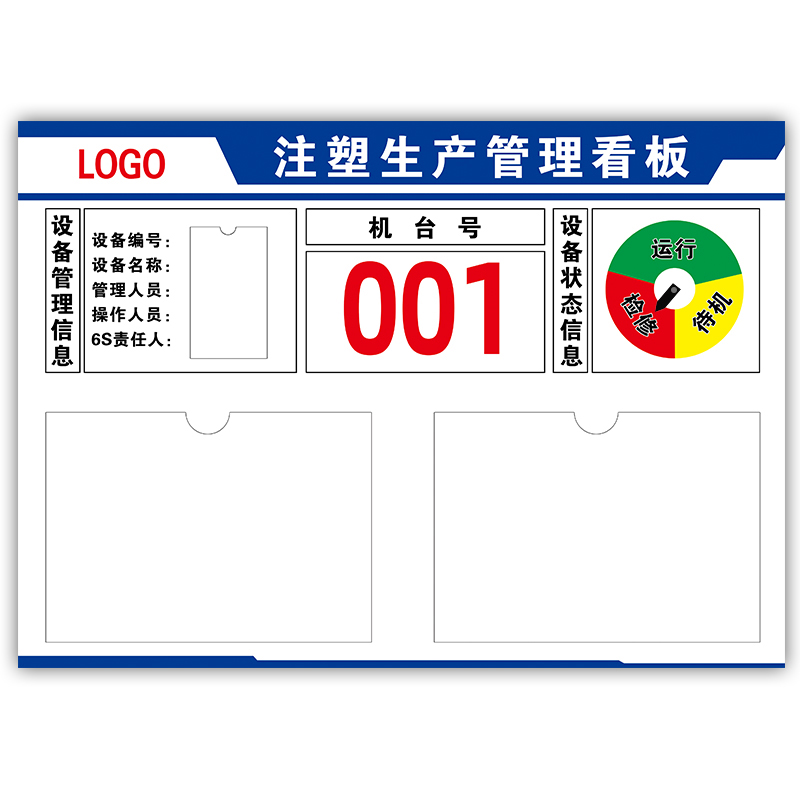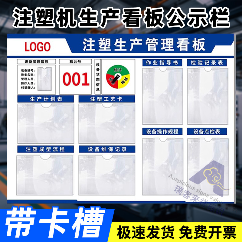 注塑机生产看板展示板生产管理公示栏注塑机标识牌定制工厂车间看板标识牌运行维护管理提示牌编号维检提示牌