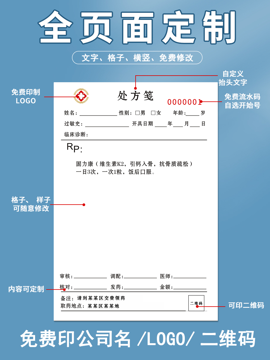 三益档案处方笺诊所中医院口腔门诊通用处方签医用处方单兽医药店卫生室医生诊断处方纸处方签可定制LOGO