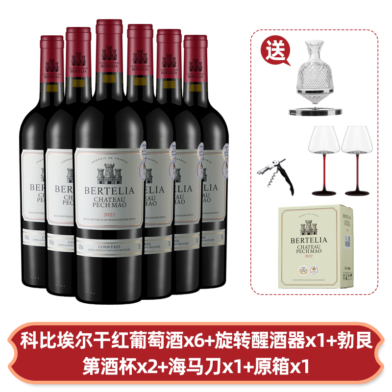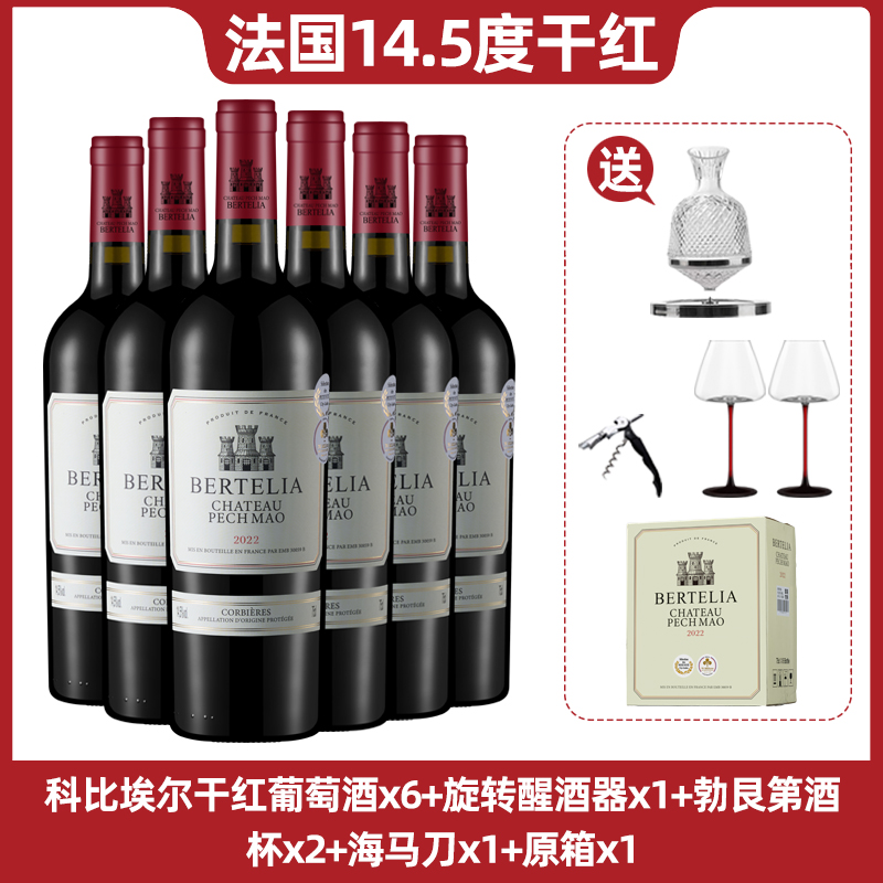 柏特利雅科比埃尔干红葡萄酒14.5度红酒整箱750ml*6支装送酒具