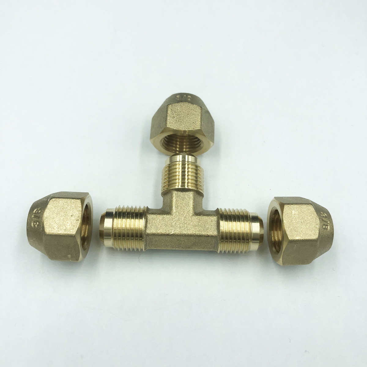 扩口英制紫铜管免焊接喇叭口空调制冷配件插口等径三通三接头配帽