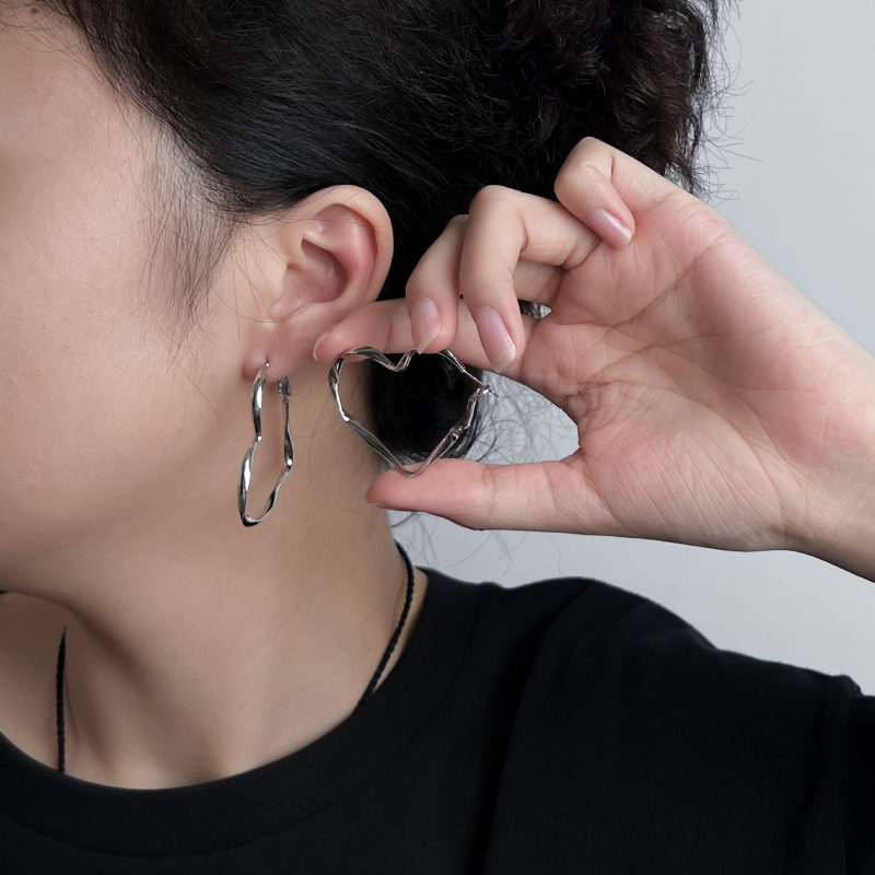 KANSAI新款不规则大爱心耳针冷淡风耳钉女小众设计感2022年夏耳环