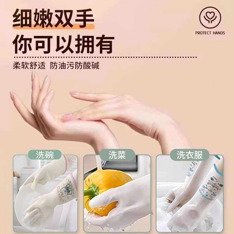 洗碗手套加绒加厚保暖加长男女家务厨房耐用胶皮洗衣清洁橡胶乳胶