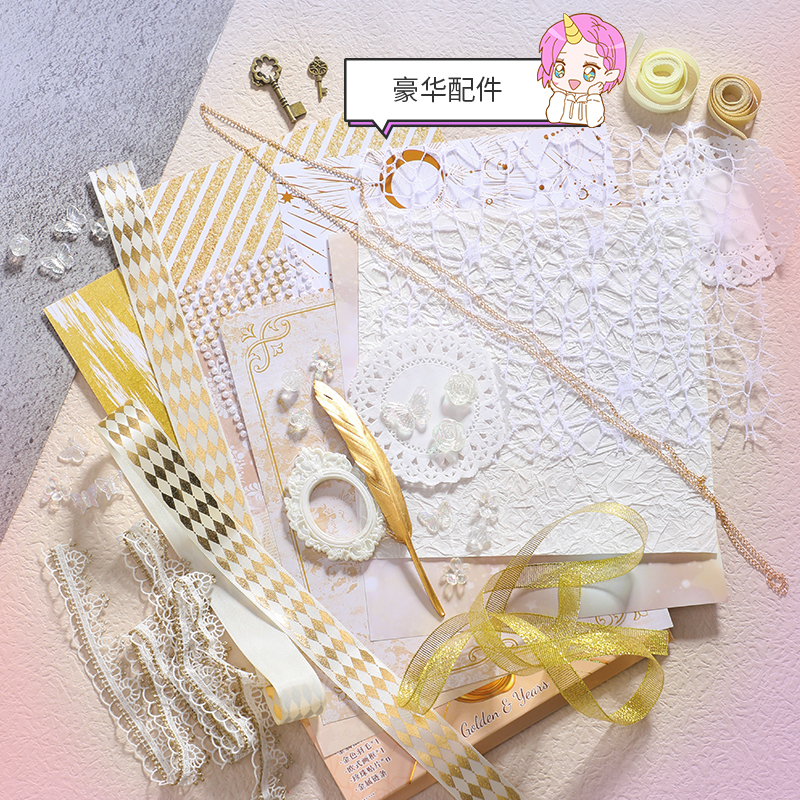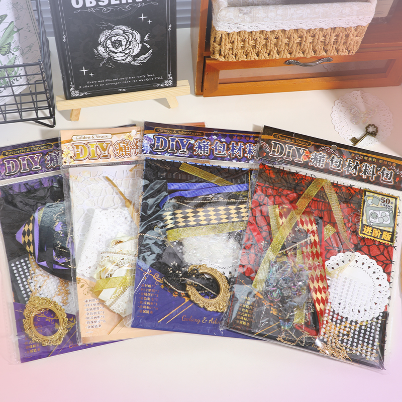 华丽DIY痛包材料吧唧谷子扎版黑色金属配件丝带巴洛克背景纸扎包