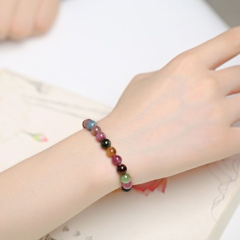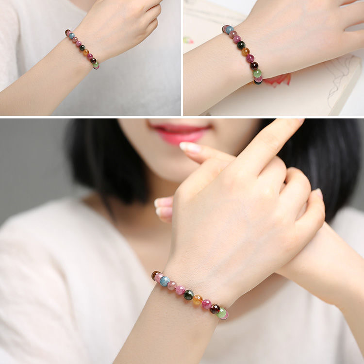 巴西碧玺手串单圈三圈彩虹糖果碧玺手链女宝石多圈彩色手串
