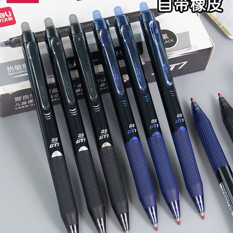 得力蓝色黑色热可擦笔中小学生定制刻名字中性笔刻字按动式摩易擦
