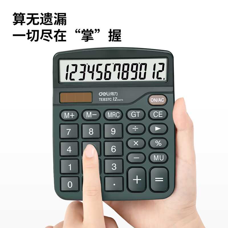 得力计算器12位数显双电源会计财务办公用无声太阳能学生用计算器