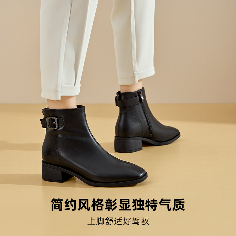 【商场同款】黑色切尔西短靴女真皮粗跟新款初秋妈妈靴及踝靴