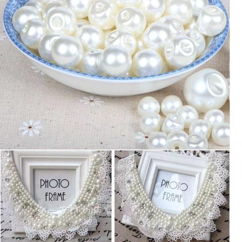 珍珠纽扣旗袍衬衫纽扣diy手工圆形斜孔珍珠装饰扣开衫扣毛衣扣子