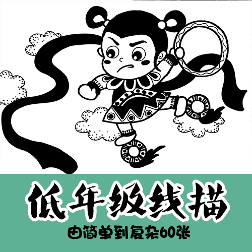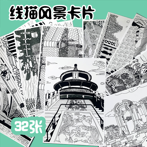 黑白线描画临摹卡简单低年级高年级风景潮流创意美术绘画原创儿童