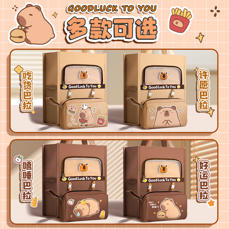 卡皮巴拉补习袋手提袋学生拎书袋补课包帆布美术小学生初中生书袋书包铺导班笔袋牛津布文件袋带作业小书包