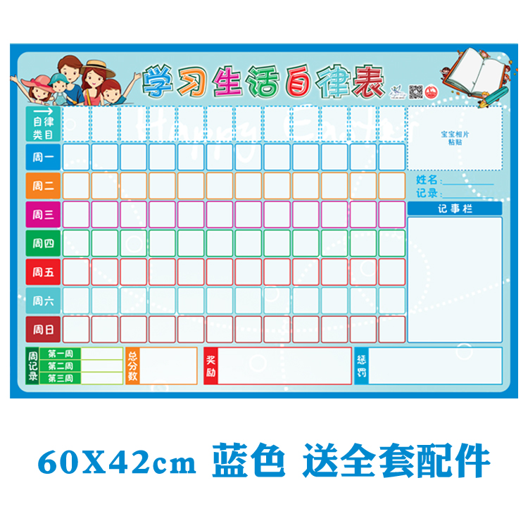 儿童奖励计划记录表墙贴成长自律表幼儿园宝宝学习课程表生活表现