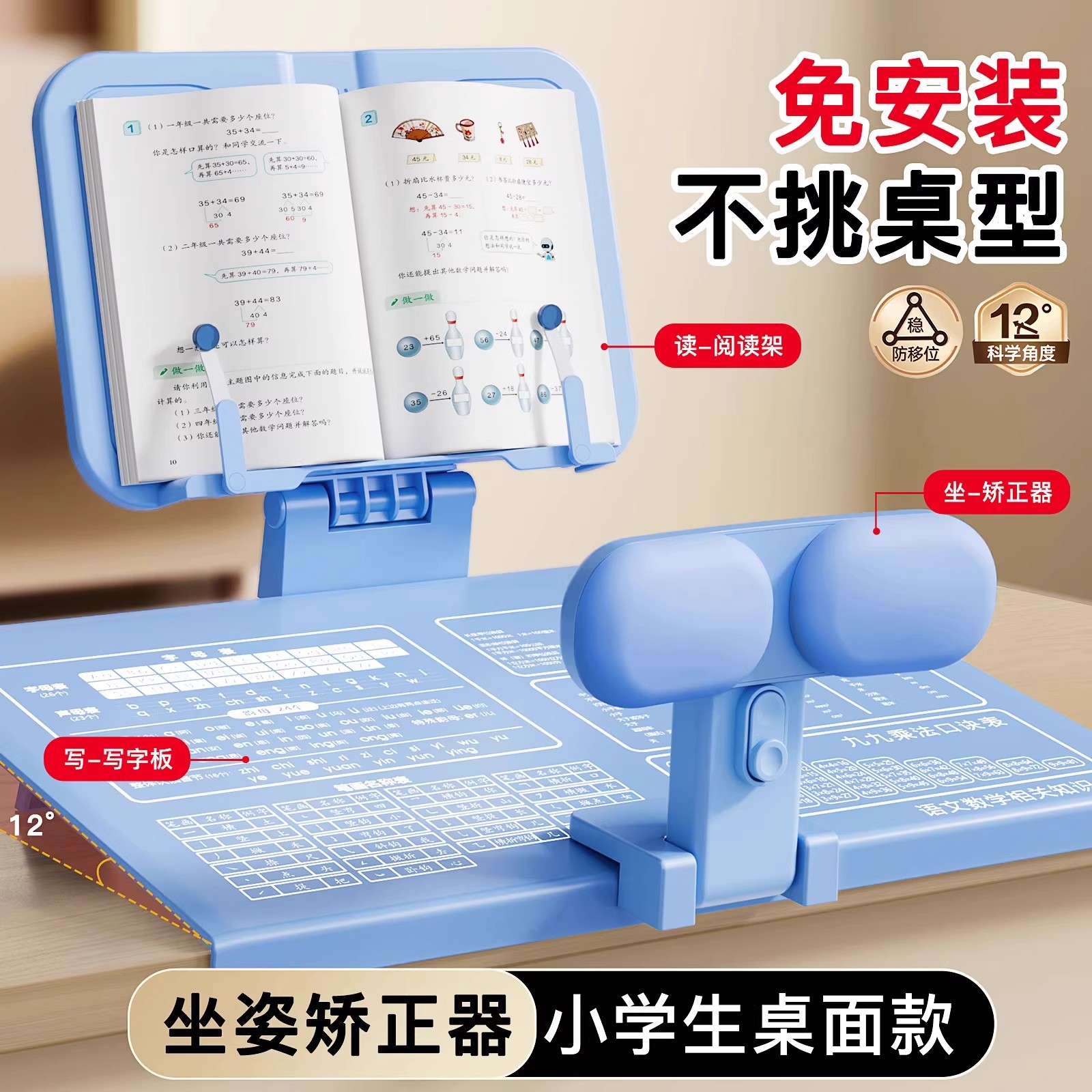 坐姿矫正器小学生写字姿势纠正可折叠翻转儿童桌面款作业书写夹桌防低头驼背学习书桌座椅支架不挑厚桌子神器