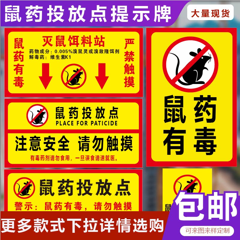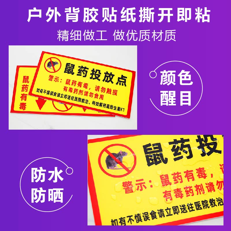 鼠药投放点标识老鼠屋灭鼠饵药投放点提示牌 当心老鼠夹老鼠盒标签纸便签不干胶PVC标贴安全警示贴标识贴纸