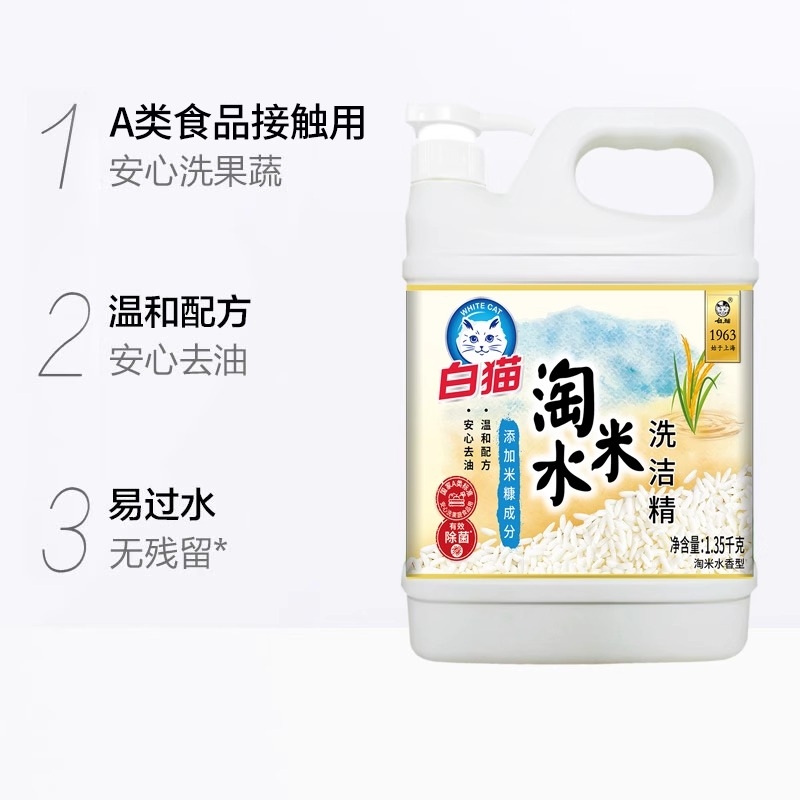 白猫淘米水洗洁精1.35KG米精华餐具果蔬不伤手去油渍家用洗涤剂