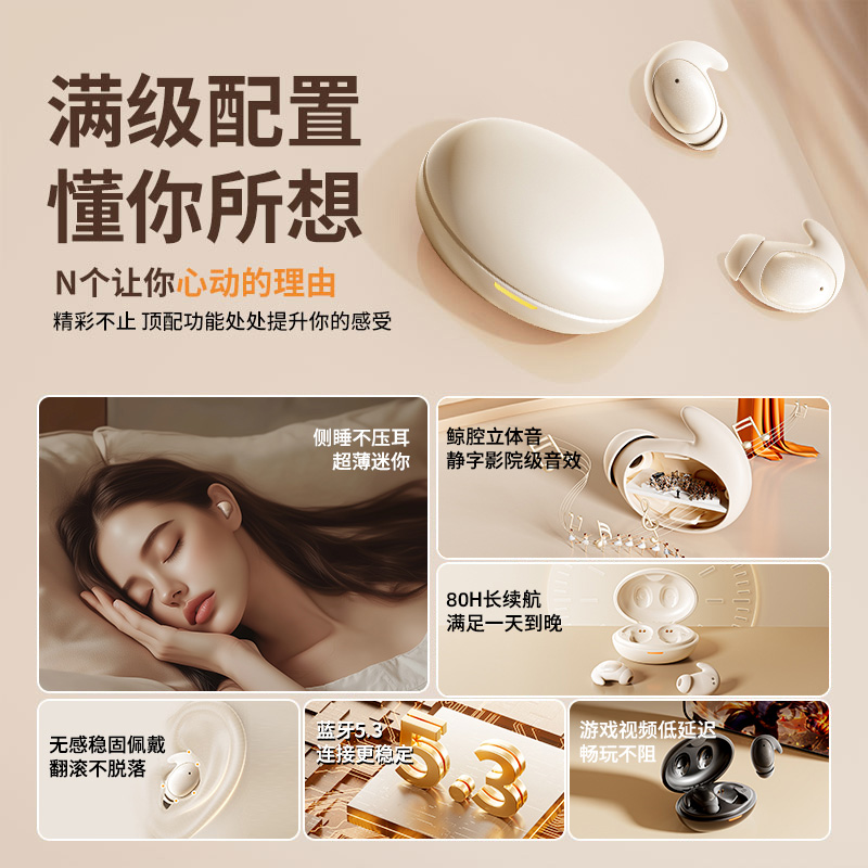 睡眠降噪耳机睡觉专用助眠无线蓝牙可侧睡不压耳2025新款超级隔音