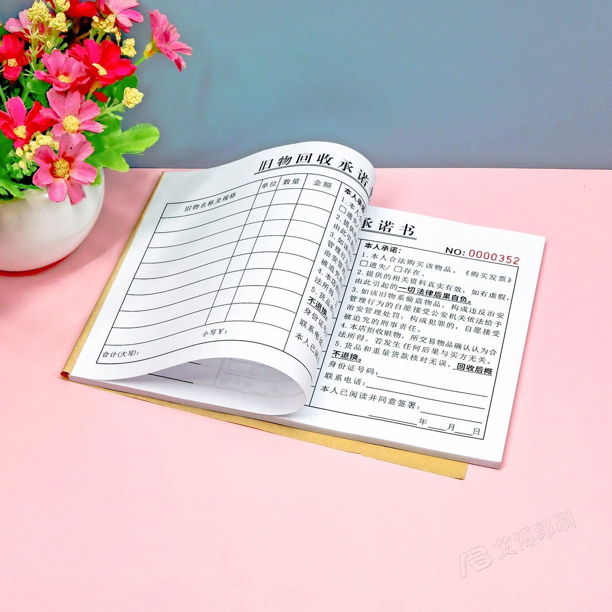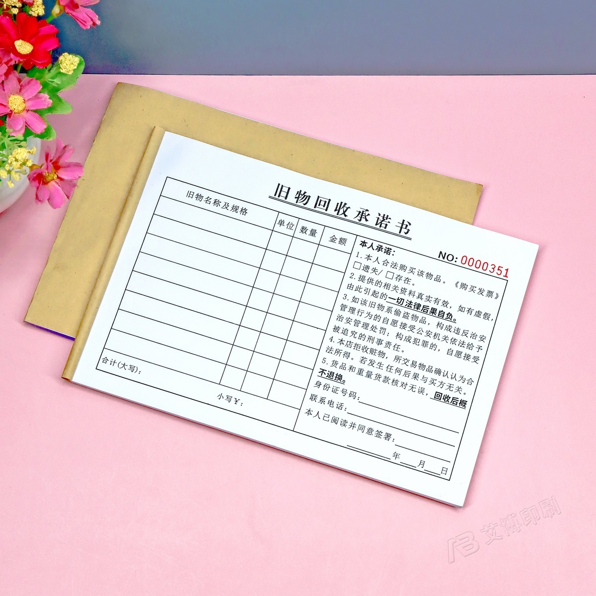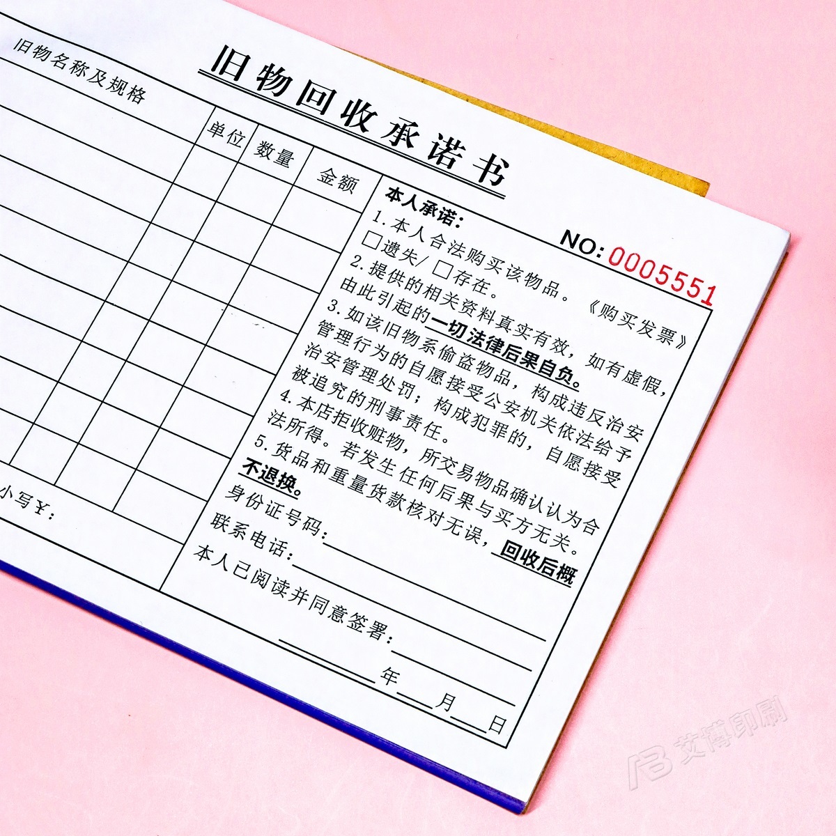 废旧金属旧物物品来源承诺书一二联寄售行寄卖回收登记表票据定制