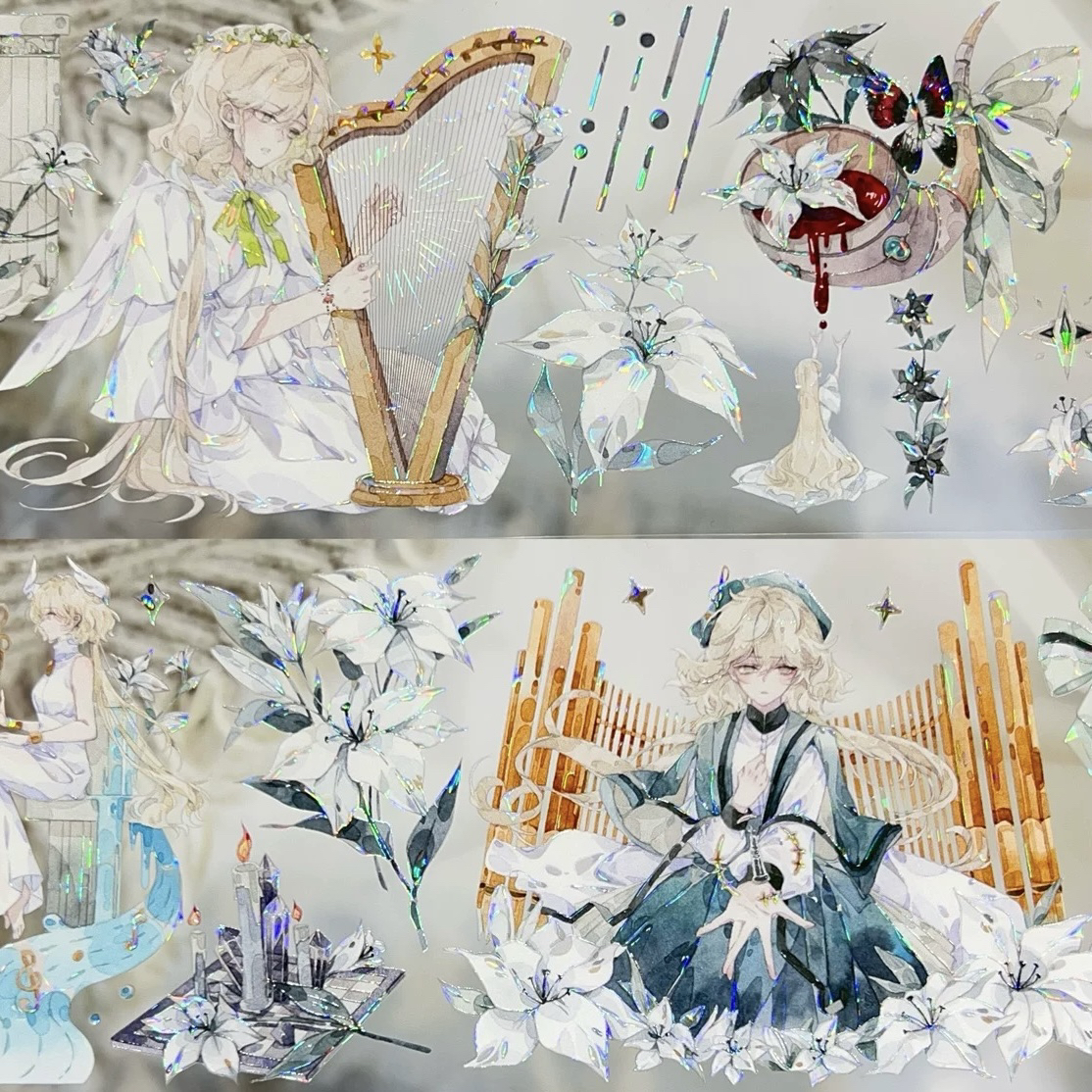 糖分超标 摩罗悲歌 PET贝壳光胶带人物背景打底华丽手帐流麻素材