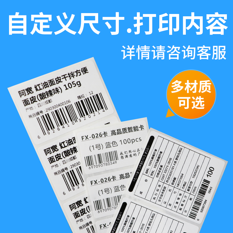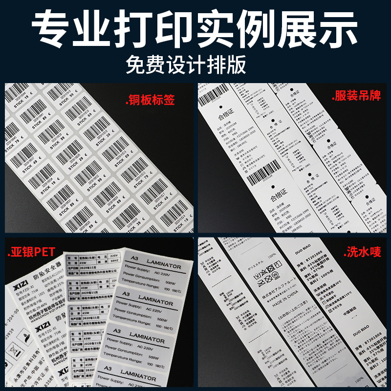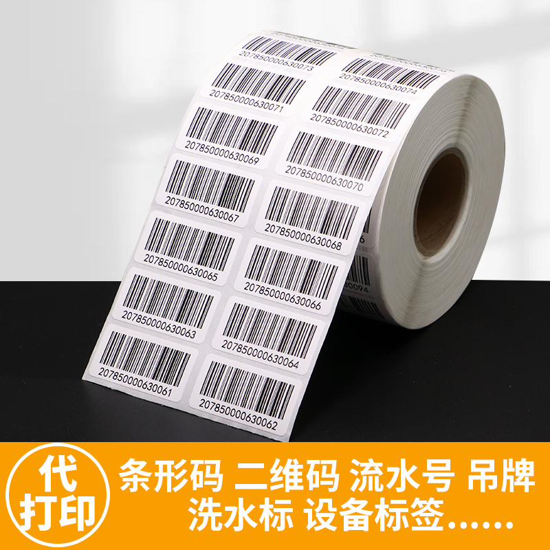 铜版纸亚银标合成签纸不干胶标签代打印条码价签印刷固定资产洗水唛铜板纸洗标打码打吊牌合格证订做贴条形码
