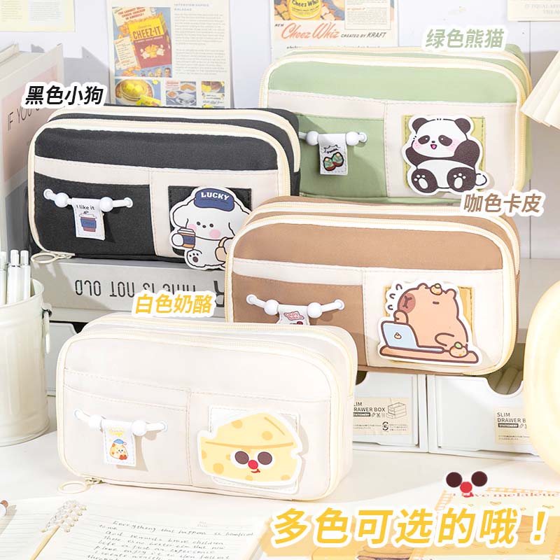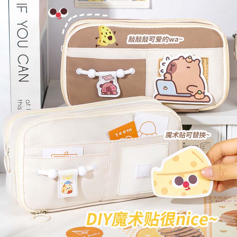 笔袋文具盒大容量魔术2025新款小众可可柠檬可爱小学生高颜值魔术贴女孩款初中生铅笔盒套装多层收纳奶酪便携